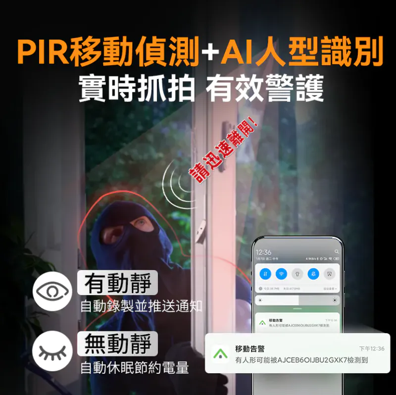 夠高清 2K高清顯示&5米夜視,智能人體偵測有效警護;