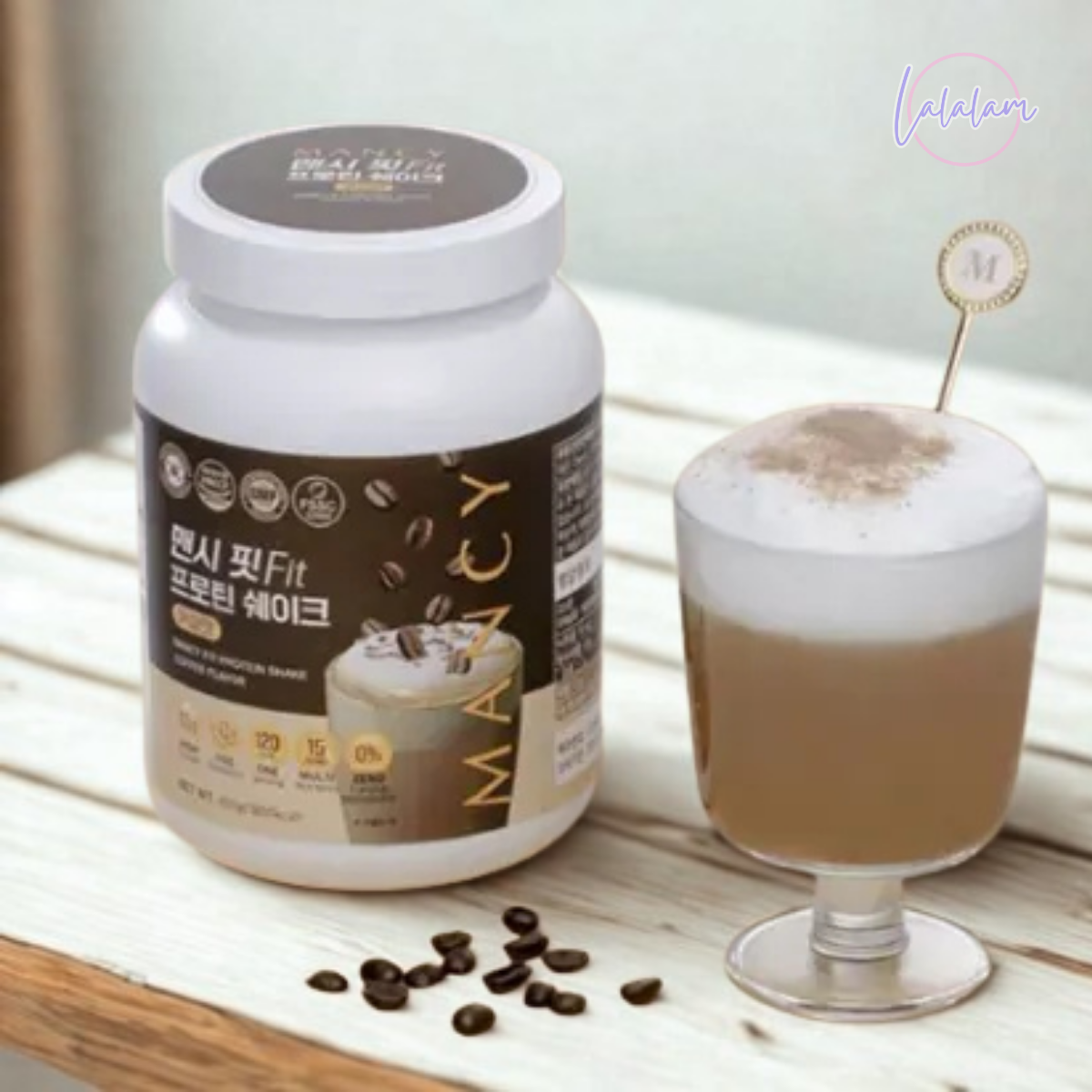 Step 2. 將兩匙平滿的粉末加到搖搖杯中 (每罐MANCY Fit內附膠匙)