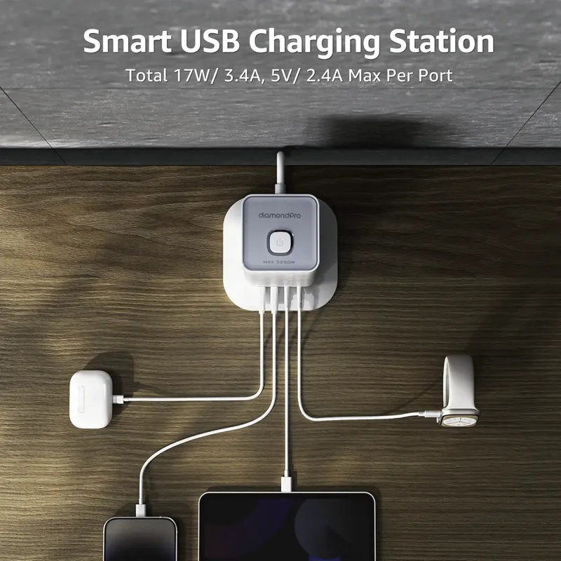DiamondPro 直立式拖板16 合 1 塔式延長線,帶 USB