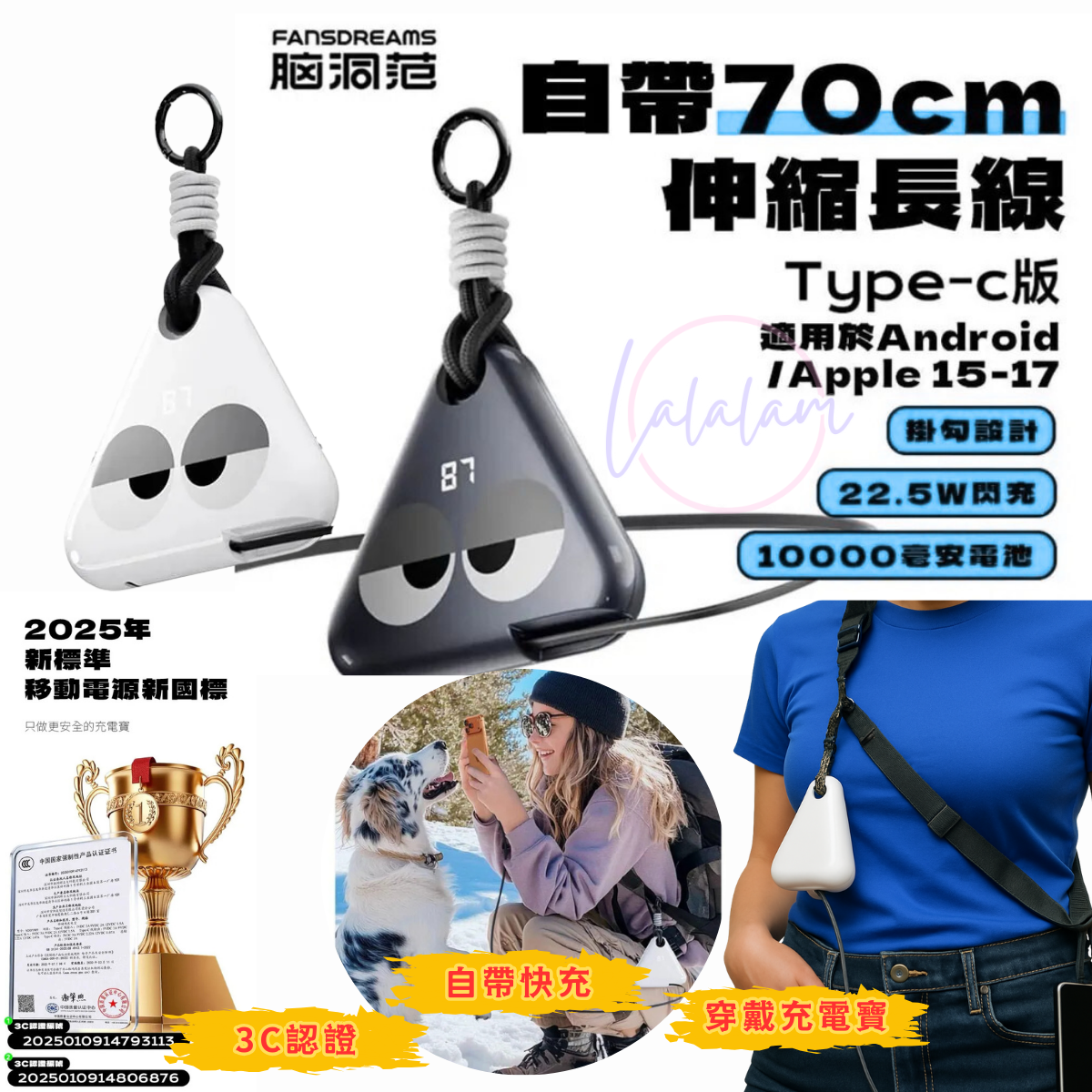 自帶70cm 申縮Type-C快速充電線