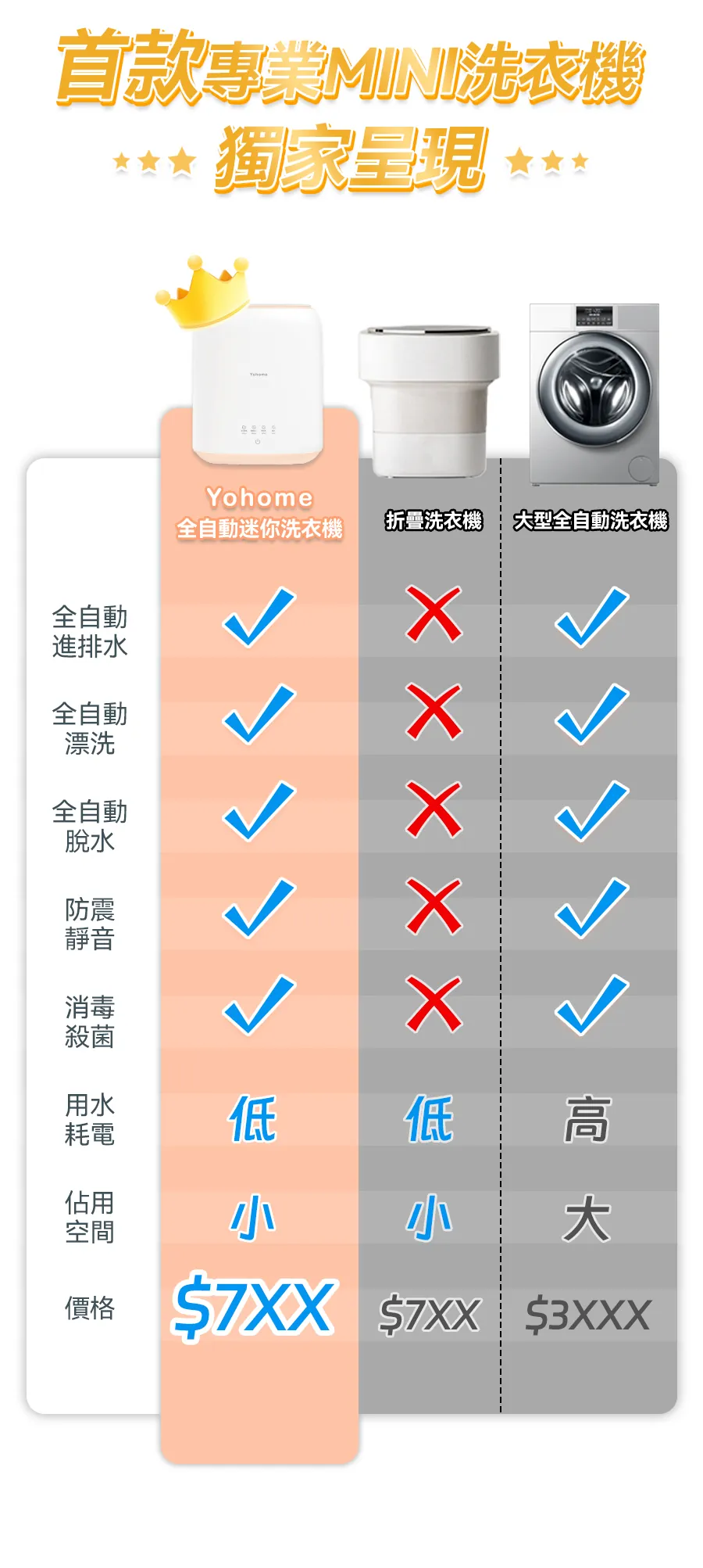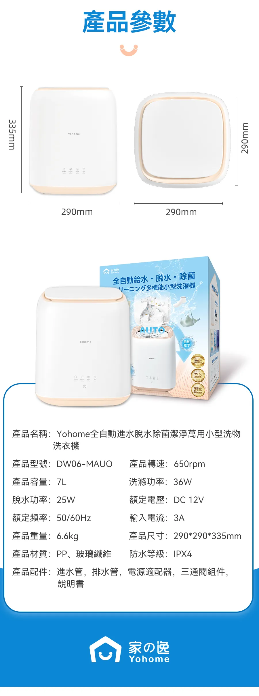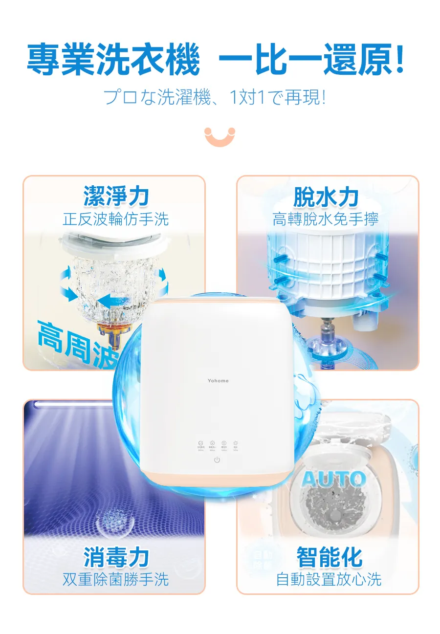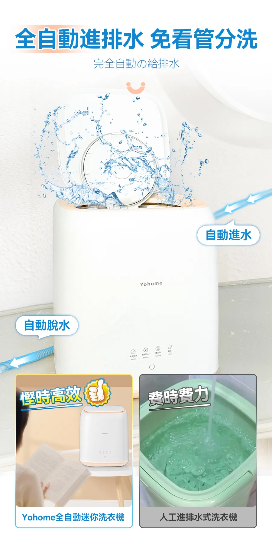 日本 Yohome全自動進水脫水除菌潔淨萬用小型洗物洗衣機