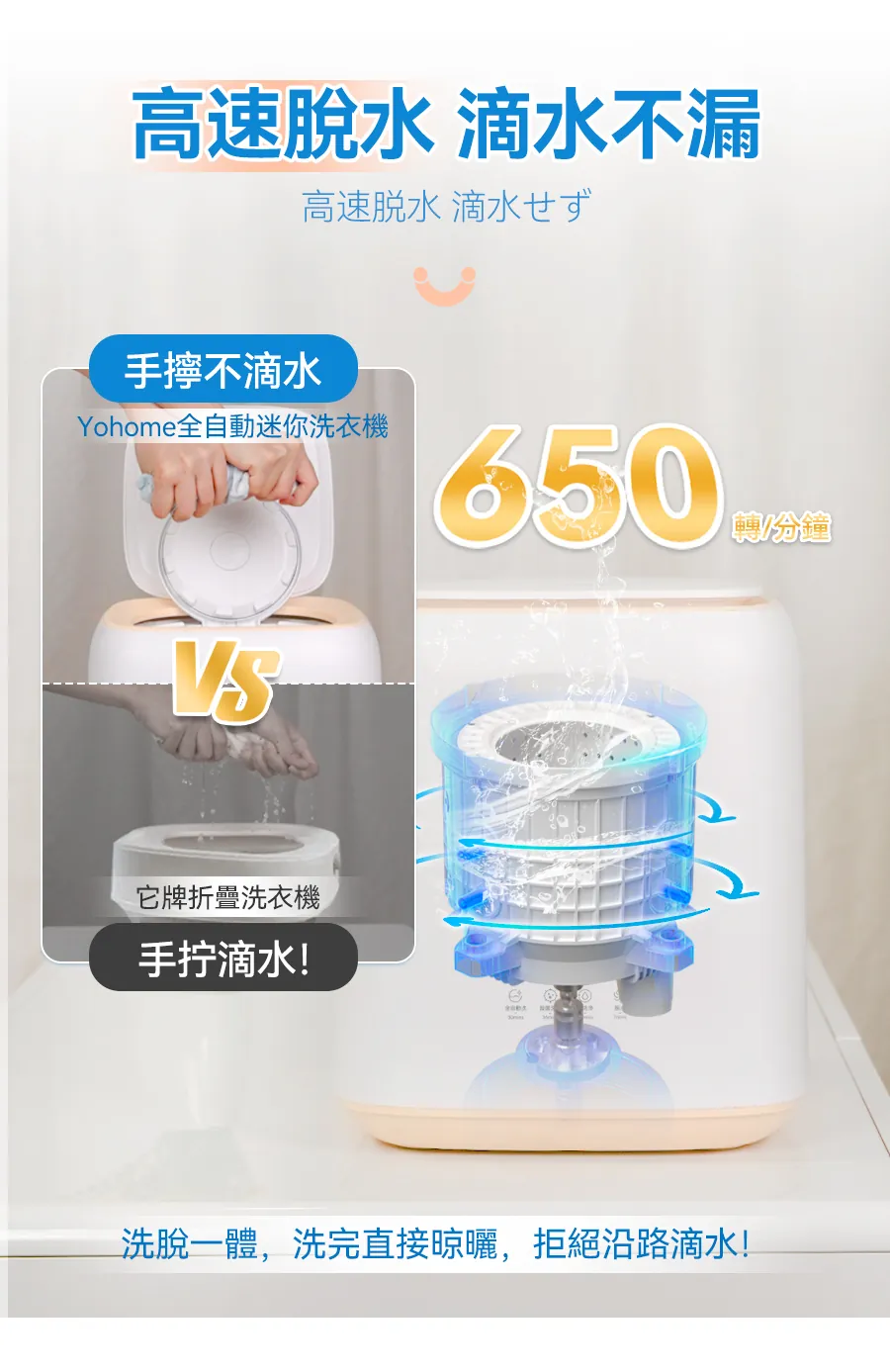 🌀650rpm高旋轉,脫水幹衣,衣物不滴水